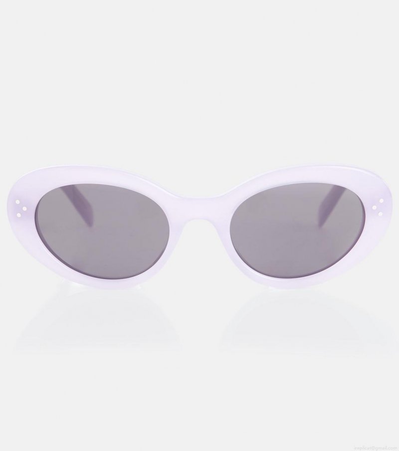 Embrace a futuristic vision with these pastel purple sunglasses from Celine Eyewear. Made from acetate with signature studding at the oval tips and temples, they're fitted with tinted lenses for full protection from UV rays. Match yours to similarly hued separates as temperatures climb. Please note this style comes in a leather case, whose color may vary.