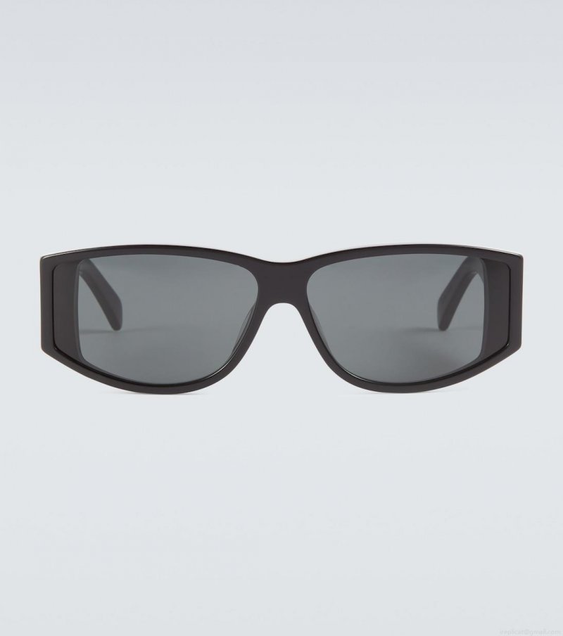From Celine Eyeware, these black acetate sunglasses are built in a classic rectangular shape. Distinguished by logo-embossed temples and tinted smoke lenses, these sunglasses also come with a branded leather case.