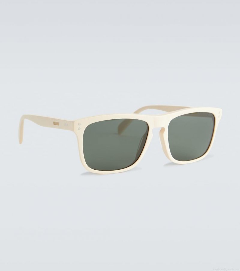 In a classic rectangular shape, these ivory acetate sunglasses from Celine Eyewear have green-tinted lenses, a gold-tone logo engraved at the temples, and come with a grained leather case.