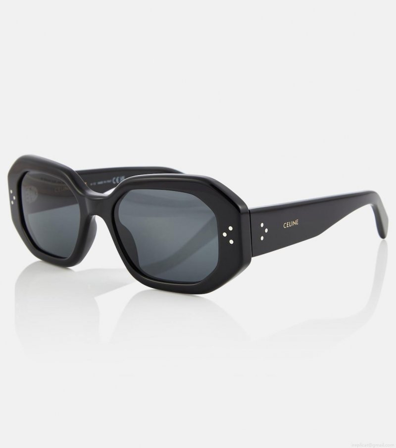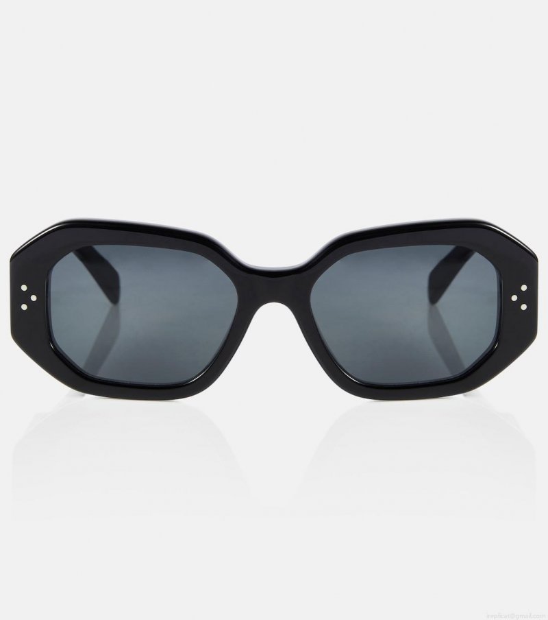 Celine Eyewear looks to the future with designs like these rectangular sunglasses. Made in Italy from black acetate, they have a faceted geometric silhouette with wide temples and logo detailing.
