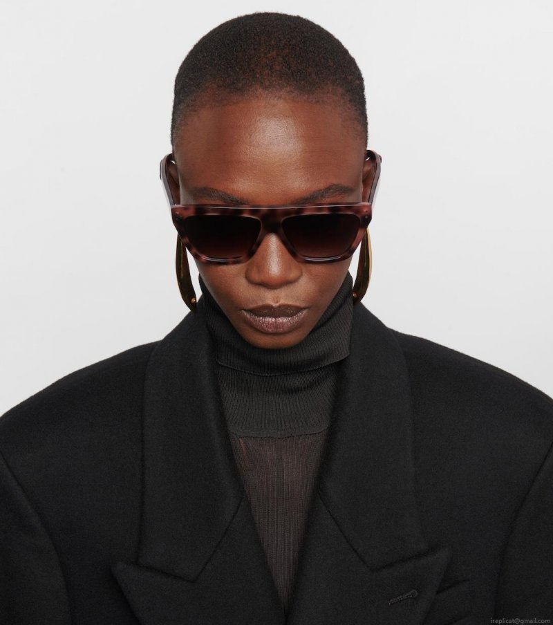 Celine Eyewear creates a contemporary perspective on timeless accessory design. Shaped with a visor-inspired acetate frame, these tortoiseshell sunglasses have tinted lenses and branded temples.