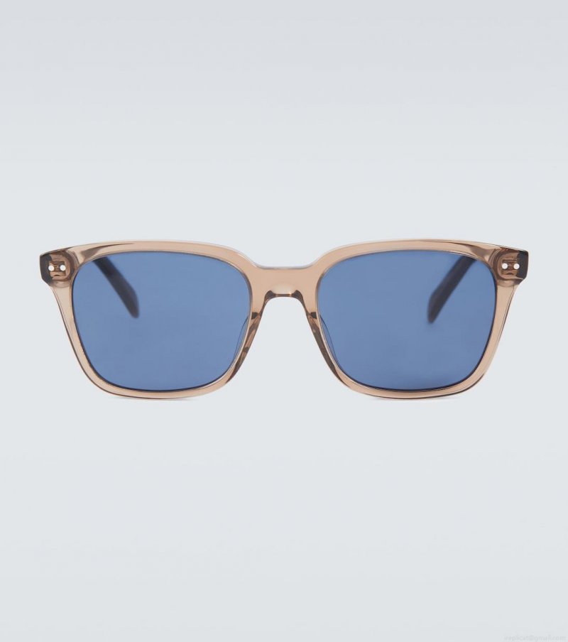 These square-frame sunglasses from Celine Eyeware are crafted from a shiny, light brown acetate. Accented with logo-embossed temples in minimal gold, these sunglasses also feature tinted blue lenses.