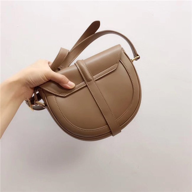 SMALL BESACE 16 IN SATINATED CALFSKIN WITH AN ADJUSTABLE SHOULDER STRAP, A TURN-LOCK CLOSURE AND A FLAT OUTER POCKET.