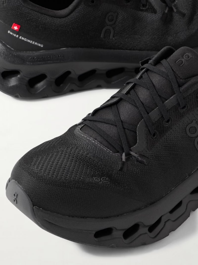 - Black stretch recycled-knit
