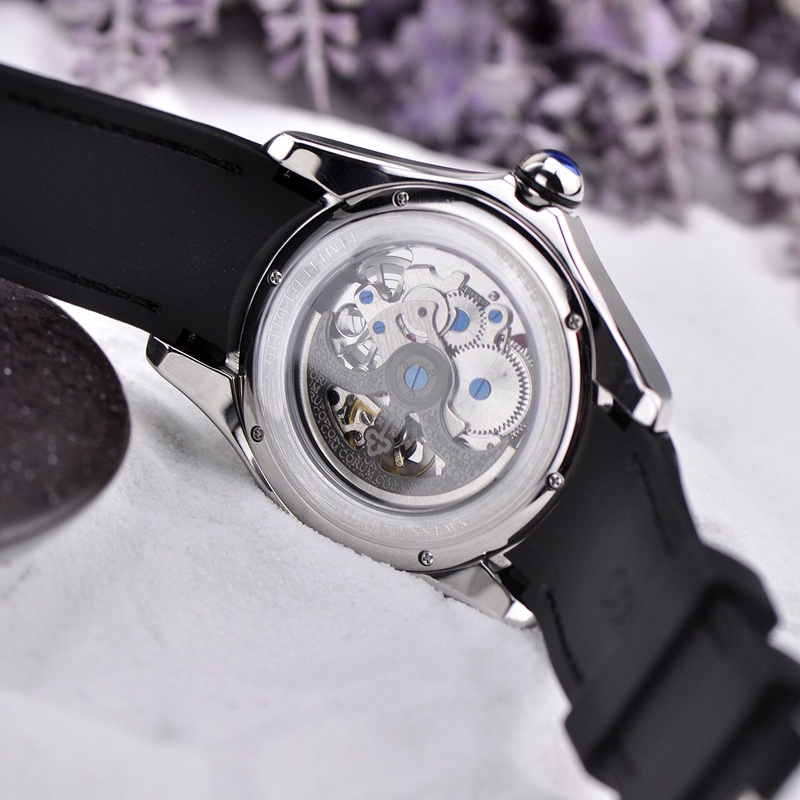 The blue, green, and purple tricolor hollow design, with dual-color green and purple markers, allows you to witness the precise operation of the CO0082 automatic winding movement through the magnified view of the crystal. The mysterious purple, vibrant green, and elegant blue colors are vibrant and harmonious. The unique separation of green and purple luminous hands design adds a cool touch to the watch. Life can be so colorful and diverse!