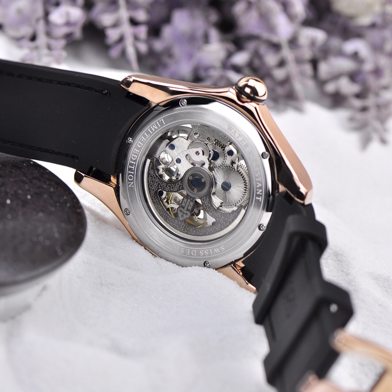 The blue, green, and purple tricolor hollow design, with dual-color green and purple markers, allows you to witness the precise operation of the CO0082 automatic winding movement through the magnified view of the crystal. The mysterious purple, vibrant green, and elegant blue colors are vibrant and harmonious. The unique separation of green and purple luminous hands design adds a cool touch to the watch. Life can be so colorful and diverse!