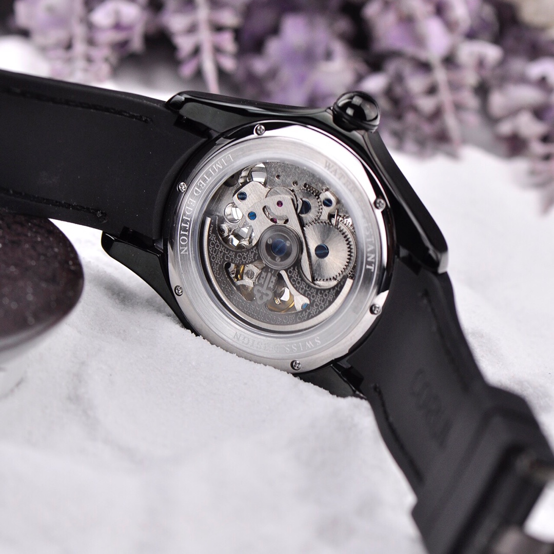 The blue, green, and purple tricolor hollow design, with dual-color green and purple markers, allows you to witness the precise operation of the CO0082 automatic winding movement through the magnified view of the crystal. The mysterious purple, vibrant green, and elegant blue colors are vibrant and harmonious. The unique separation of green and purple luminous hands design adds a cool touch to the watch. Life can be so colorful and diverse!