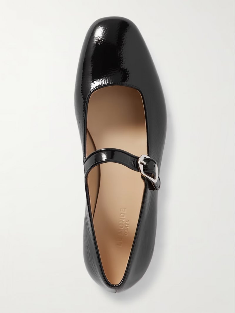 - Black crinkled patent-leather (Calf)