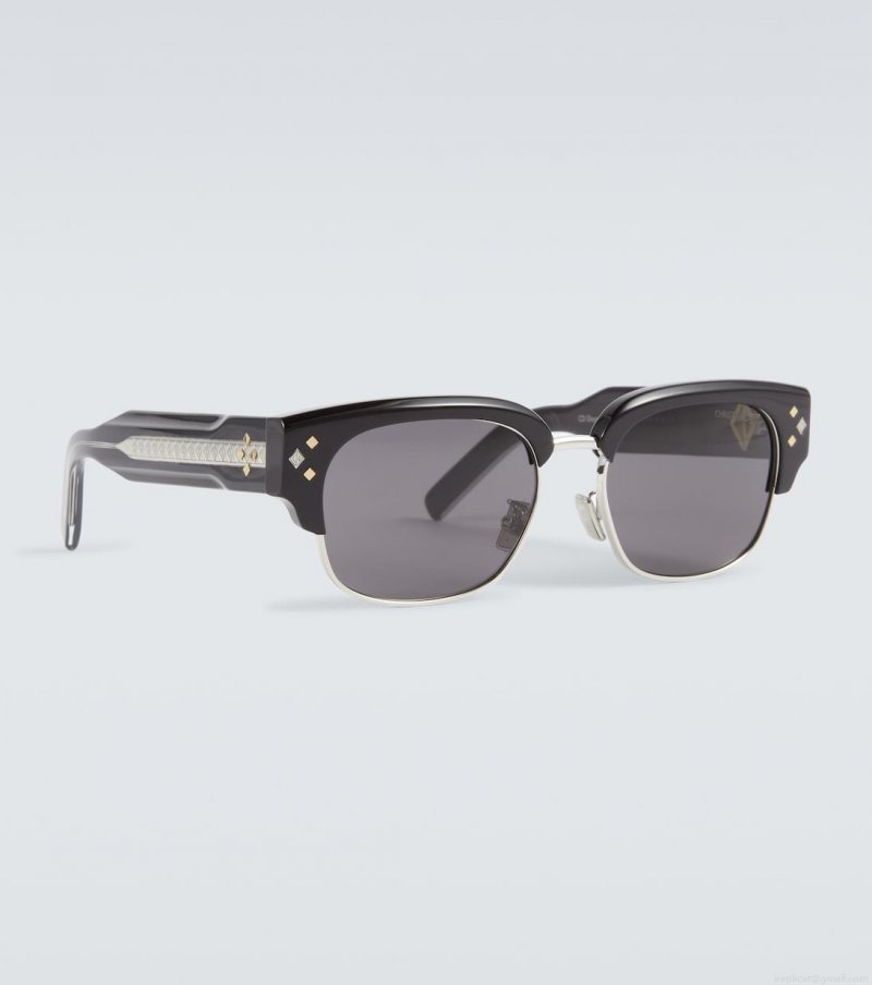 These sunglasses from Dior Eyewear are crafted from black acetate in a contemporary square silhouette with dark fixed lenses for UVA/UVB protection. Made in Italy, the pair feature crystal embellishments at the temples.