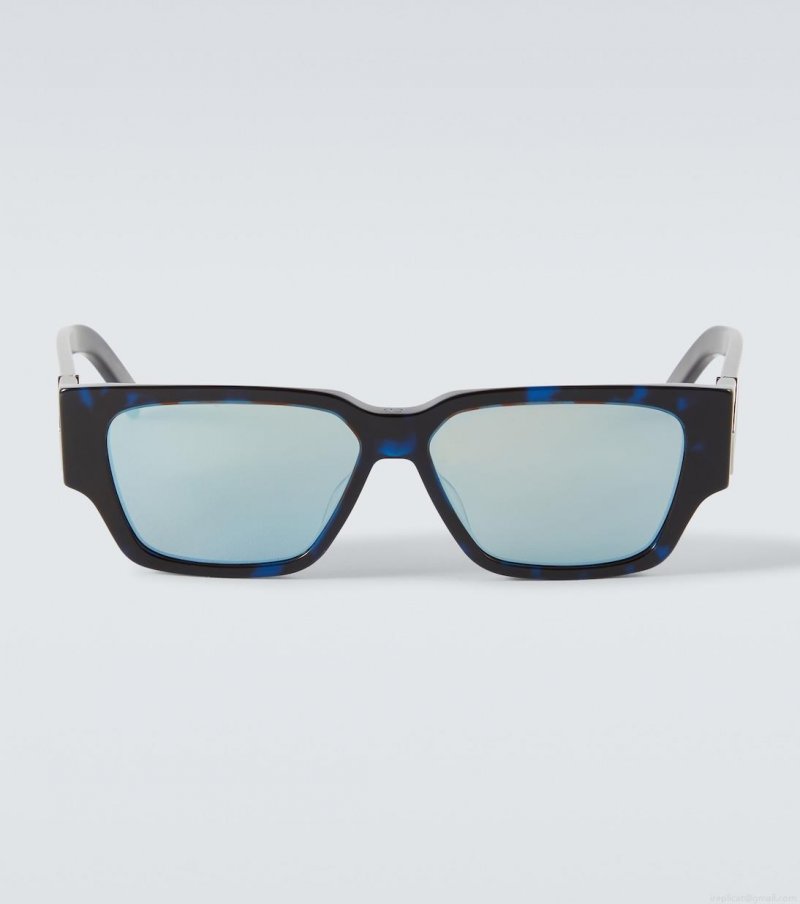 Dior Eyewear fuses elegant lines with a contemporary rectangular silhouette with the CD Diamond S5I sunglasses. The style has a blue tortoiseshell frame with blue-reflective lenses and is finished with silver-tone logo hardware at the temples.