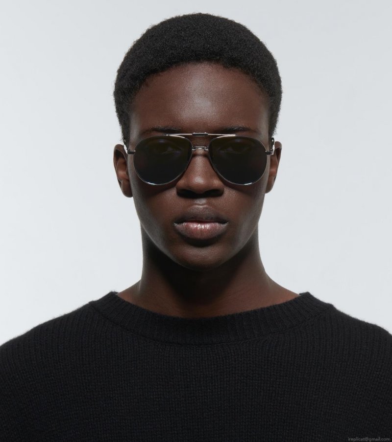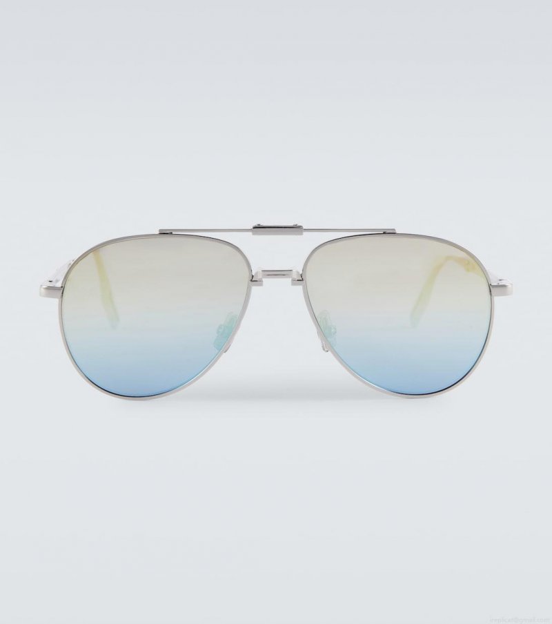 A collapsible design spotlighting brand innovation, the Dior90 A1U sunglasses from Dior Eyewear fold in the middle for easy, compact storage and carrying. This aviator style features silver-toned metal frames with a nose bridge and gradient tinted lenses.