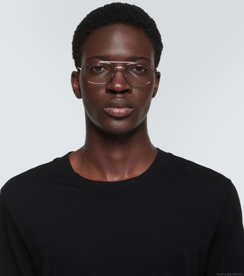 Made in Italy, Dior Eyewear's DiorBlackSuitO N2U aviator glasses have a silver-tone metal frame, a double-bar bridge, and non-prescription rectangular lenses.