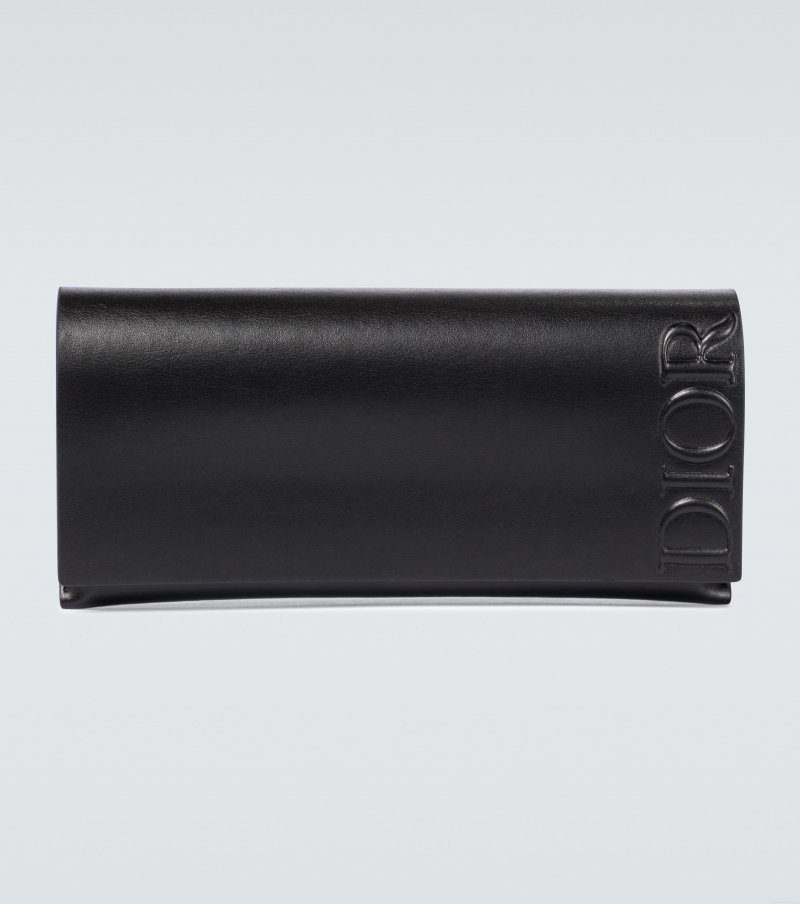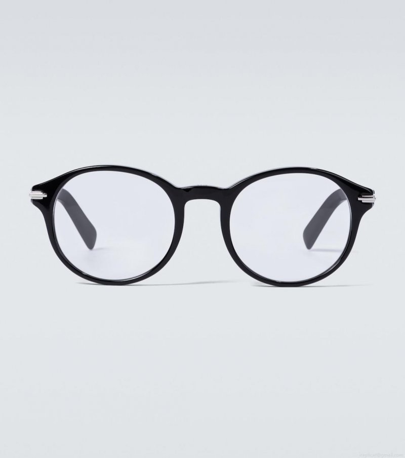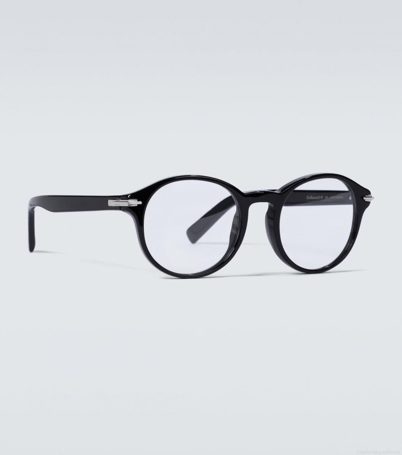 The DiorBlackSuitO RI glasses from Dior Eyewear have a thick round frame, with a silver-tone hinge accent engraved with a subtle "CD" logo.