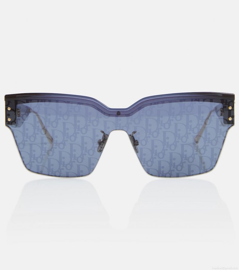 The DiorClub M4U sunglasses from Dior Eyewear are made in Italy in a square-shaped shield silhouette. The tinted blue lenses feature a graphic Dior print for a contemporary look and brand lettering at the temples.