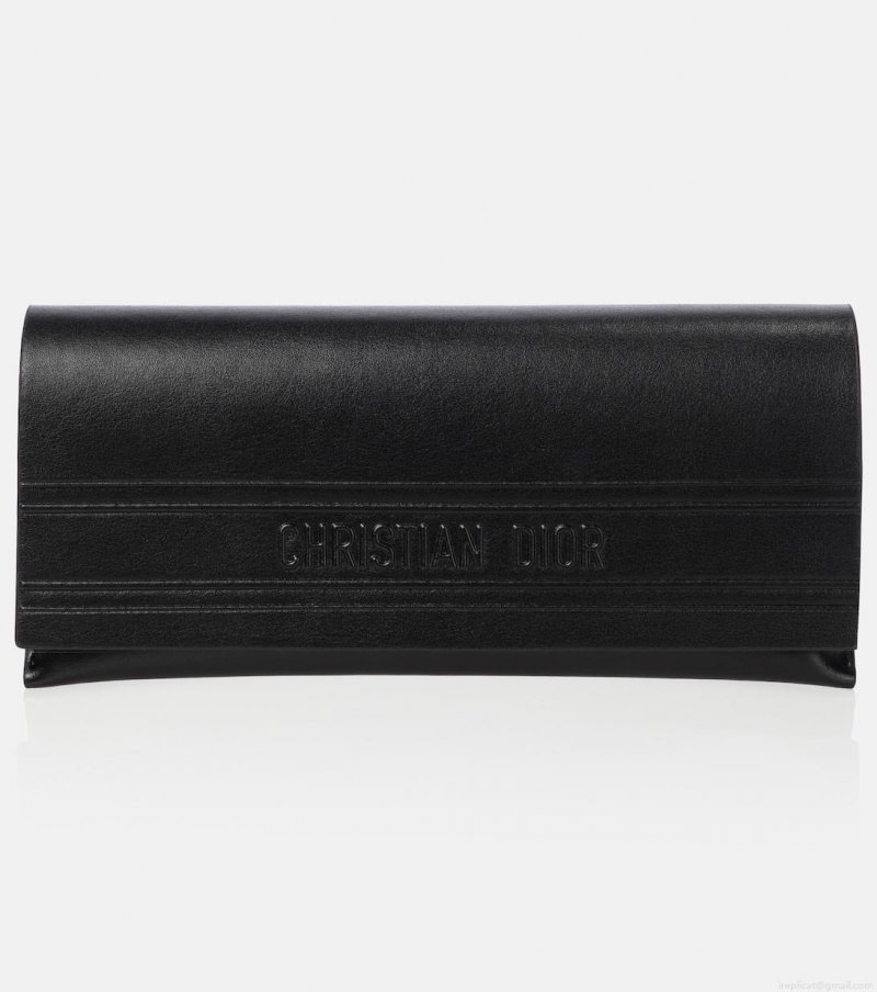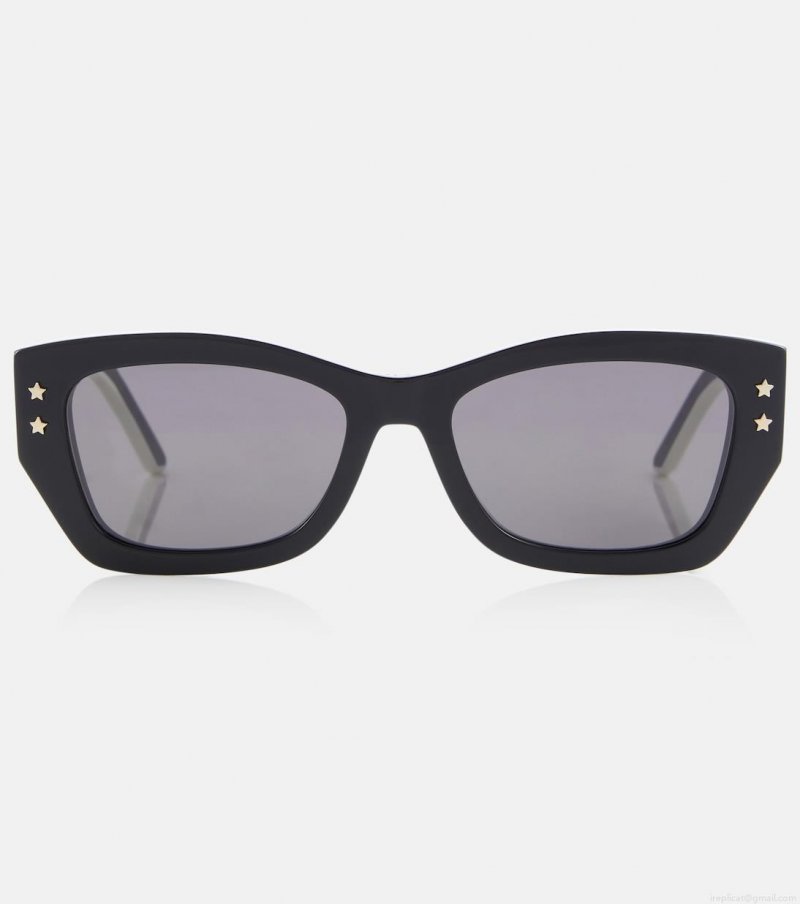 The DiorPacific S2U sunglasses have a distinctive cat-eye shape with white-edged black acetate frames and golden star accents. They're finished with bold Dior Eyewear lettering on the temples.