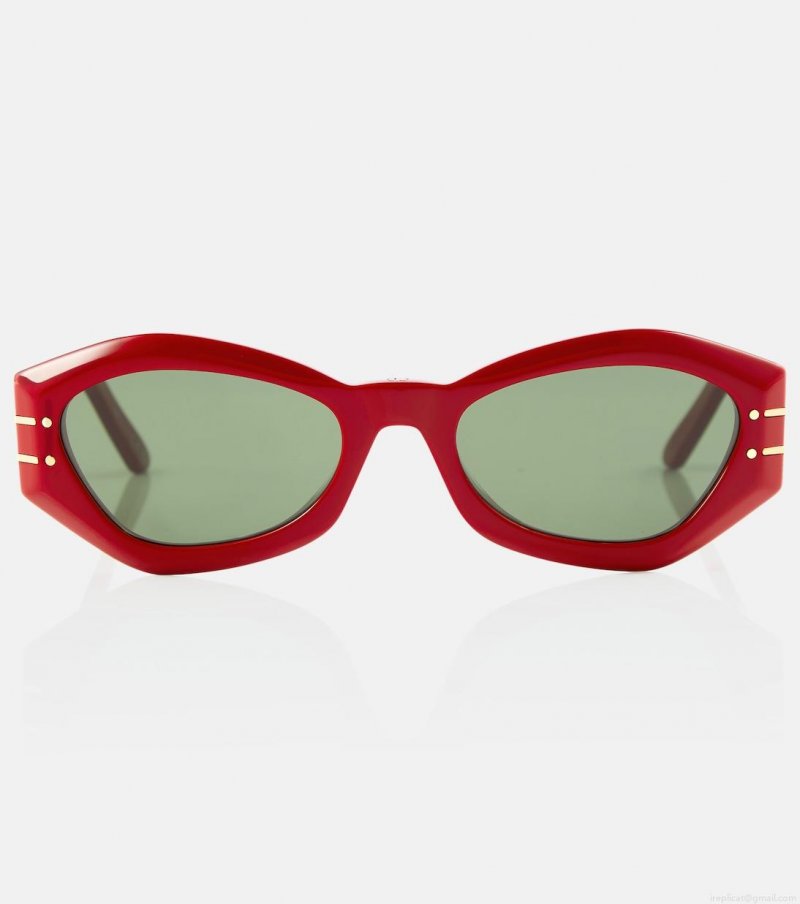 The DiorSignature B1U sunglasses from Dior Eyewear are defined by silver-tone logo inlays adorning the temples. Made in Italy from red acetate, they have an oval silhouette with geometric edges and green lenses.
