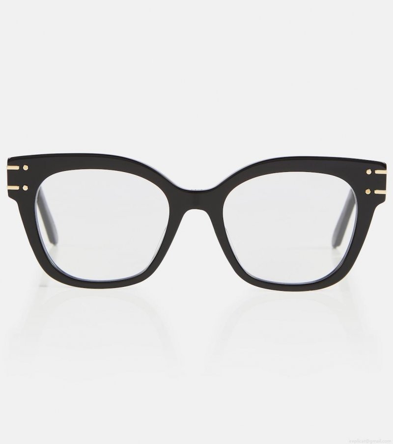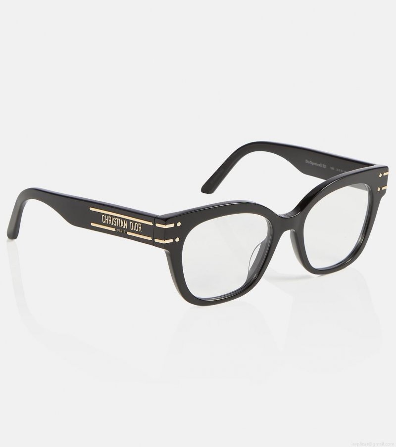 Look to Dior Eyewear for perennially stylish accessories, like the DiorSignatureO B2I glasses. The pair has black acetate frames with golden accents and signature branding. Please note that the color of the case may vary.