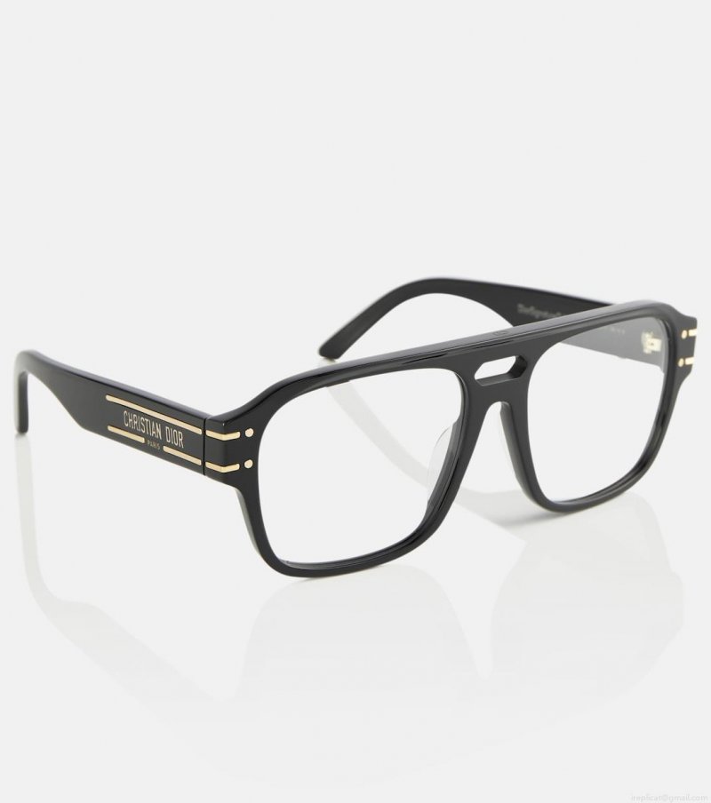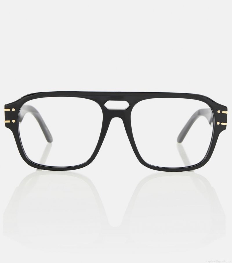 Look to Dior Eyewear for perennially stylish accessories, like the DiorSignatureO N1U glasses. The flat-brow pair has black acetate frames with golden accents and signature branding. Please note that the color of the case may vary.