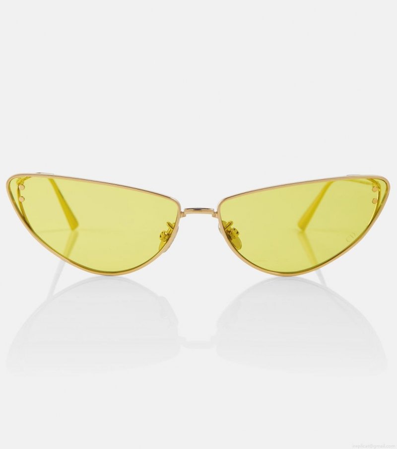 A stand out style from Dior Eyewear's new line, the MissDior B1U sunglasses have a '50s-inspired butterfly shape. This pair has thin golden metal frames and yellow lenses with 100% UVA/UVB protection.