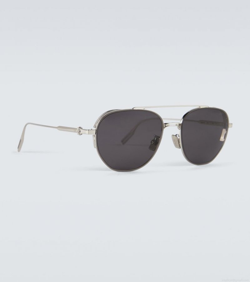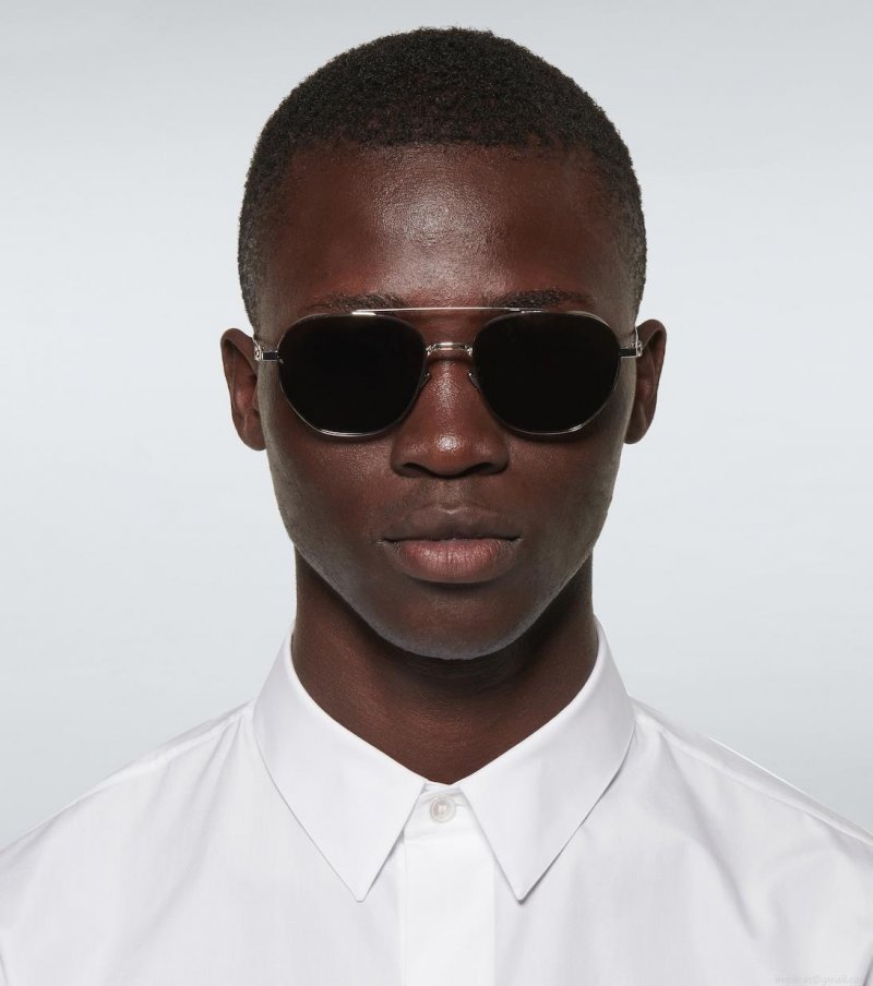 The NeoDior RU sunglasses from Dior Eyewear sport an aviator style. They feature silver-tone arms, a double-bar front detail, and have dark-tined lenses. This style comes in a leather case, please note the color of the case may vary.