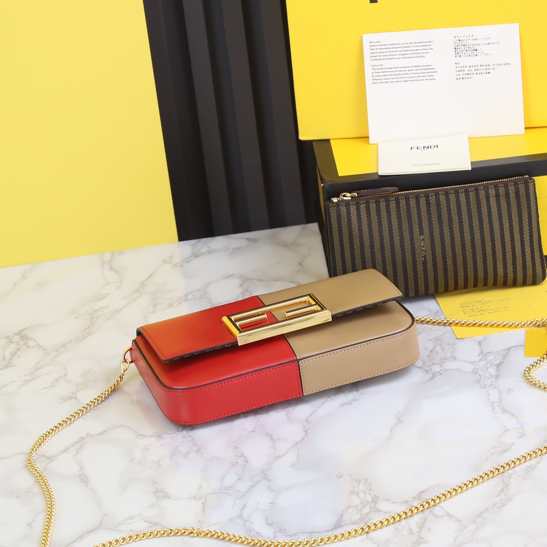 Introducing the new geometric and minimalist Baguette bag. It features an imported-grade leather with excellent texture and a sophisticated design that includes custom-made FF hardware in high-quality stainless steel. This compact and exquisite bag is a true beauty, with its striped interior adding an extra touch of uniqueness.