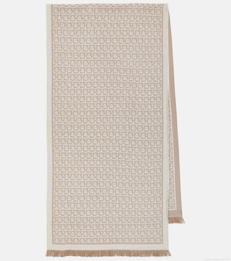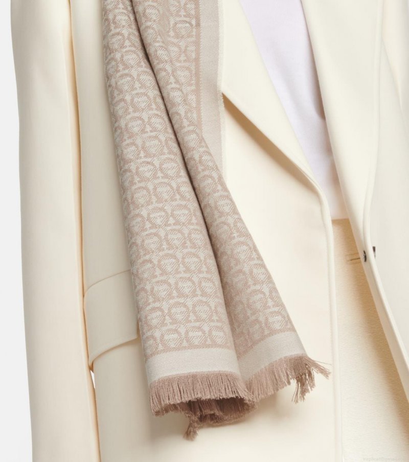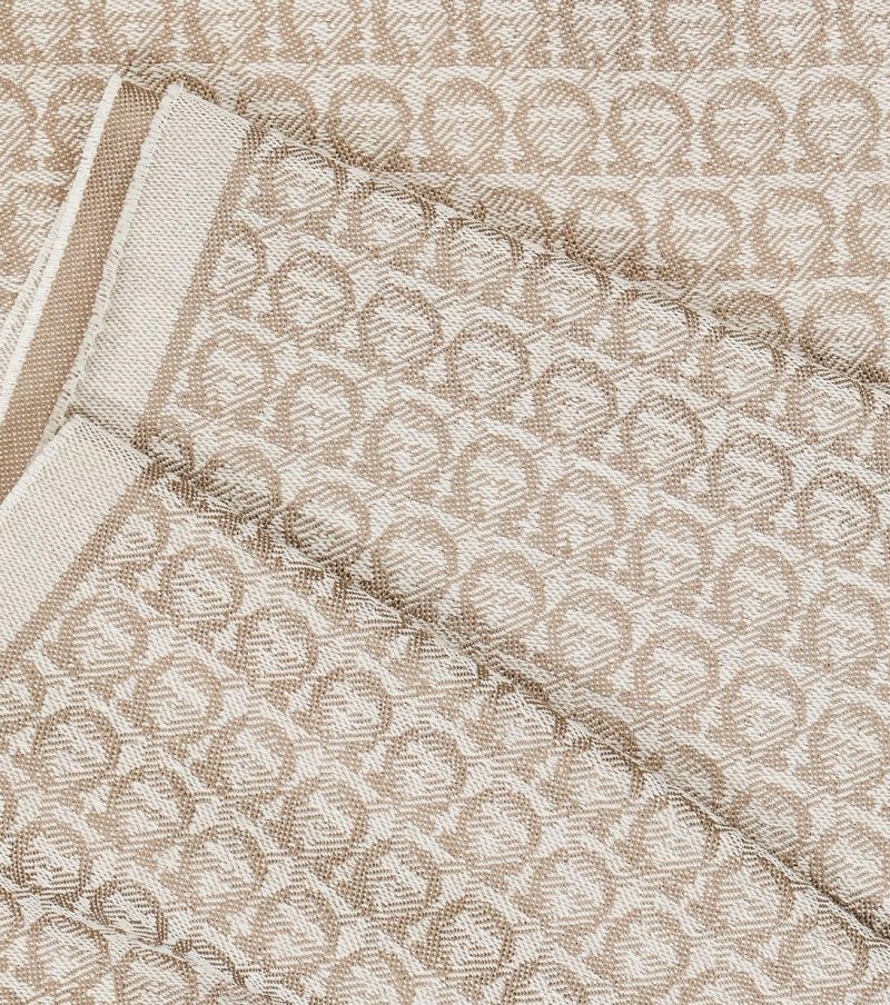 Salvatore Ferragamo's Gancini symbol debuted 50 years ago as a fastening designed by Fiamma Ferragamo. The monogram decorates this wool scarf in a geometric pattern, finished with a tactile tassel trim.