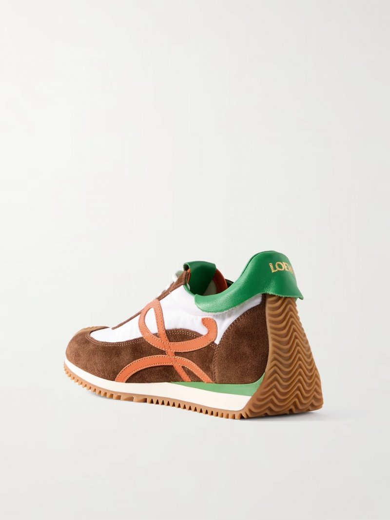 - White brushed-shell, brown brushed-suede, green and orange leather