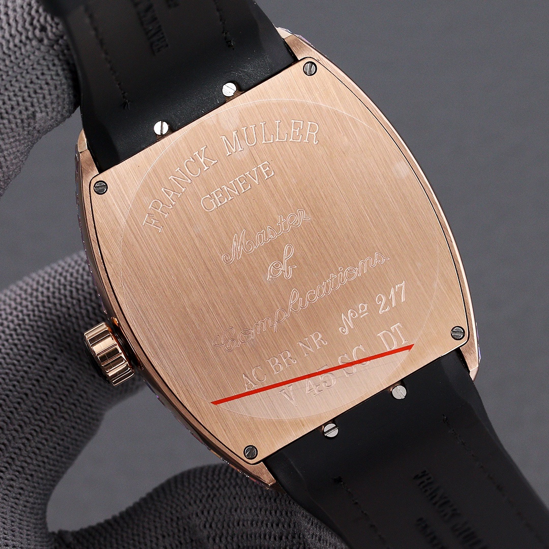Thefranck muller V45 SC DT watch is renowned for its unique design and exceptional craftsmanship. With dimensions of 54mm x 42mm, it showcases a bold and refined design style. Equipped with an automatic movement, the watch ensures precise and reliable timekeeping. The watch features hour, minute, and second functions, meeting daily usage needs. With a water resistance of 30 meters, the watch is suitable for daily activities involving water. The sapphire crystal glass dial offers excellent scratch resistance and clear time display. The folding clasp design provides convenience in wearing and adjusting the strap length, offering an enhanced wearing experience. The stainless steel case exhibits durability and a classic appearance. Paired with a leather strap, the watch is both classic and comfortable. Thefranck muller V45 SC DT watch, with its unique design and exceptional quality, is an ideal choice for individuals pursuing fashion and personality.
