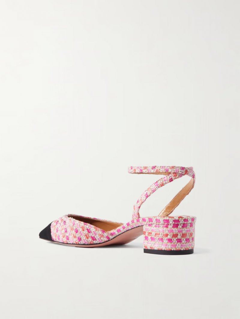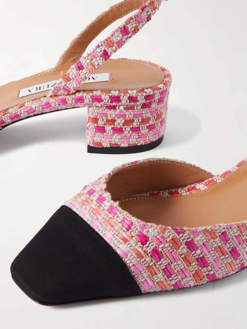 - Tonal-pink, gray and gold raffia, black grosgrain