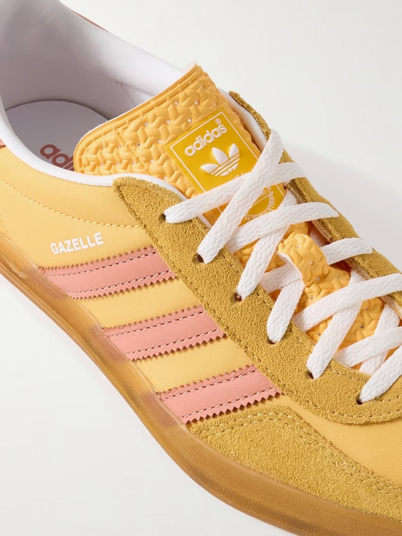 - Saffron nylon and suede (Pig), saffron, antique-rose and white leather (Cow)