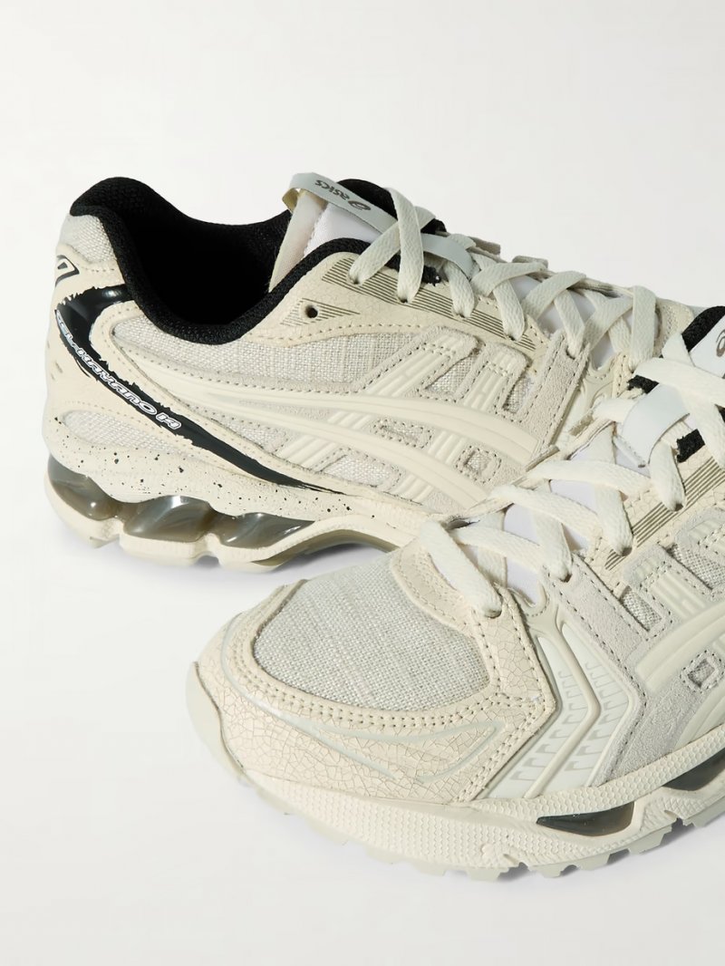 - Off-white canvas, cream, gray and black rubber, cream cracked leather (Cow)