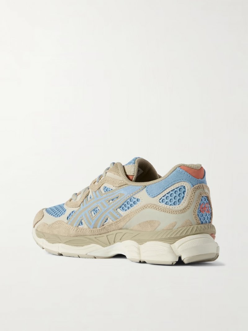 - Blue mesh and suede, beige suede and leather (Cow)