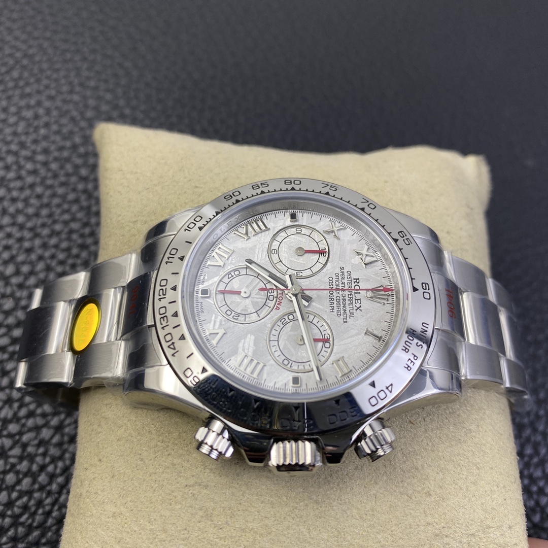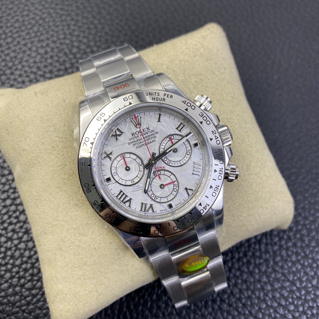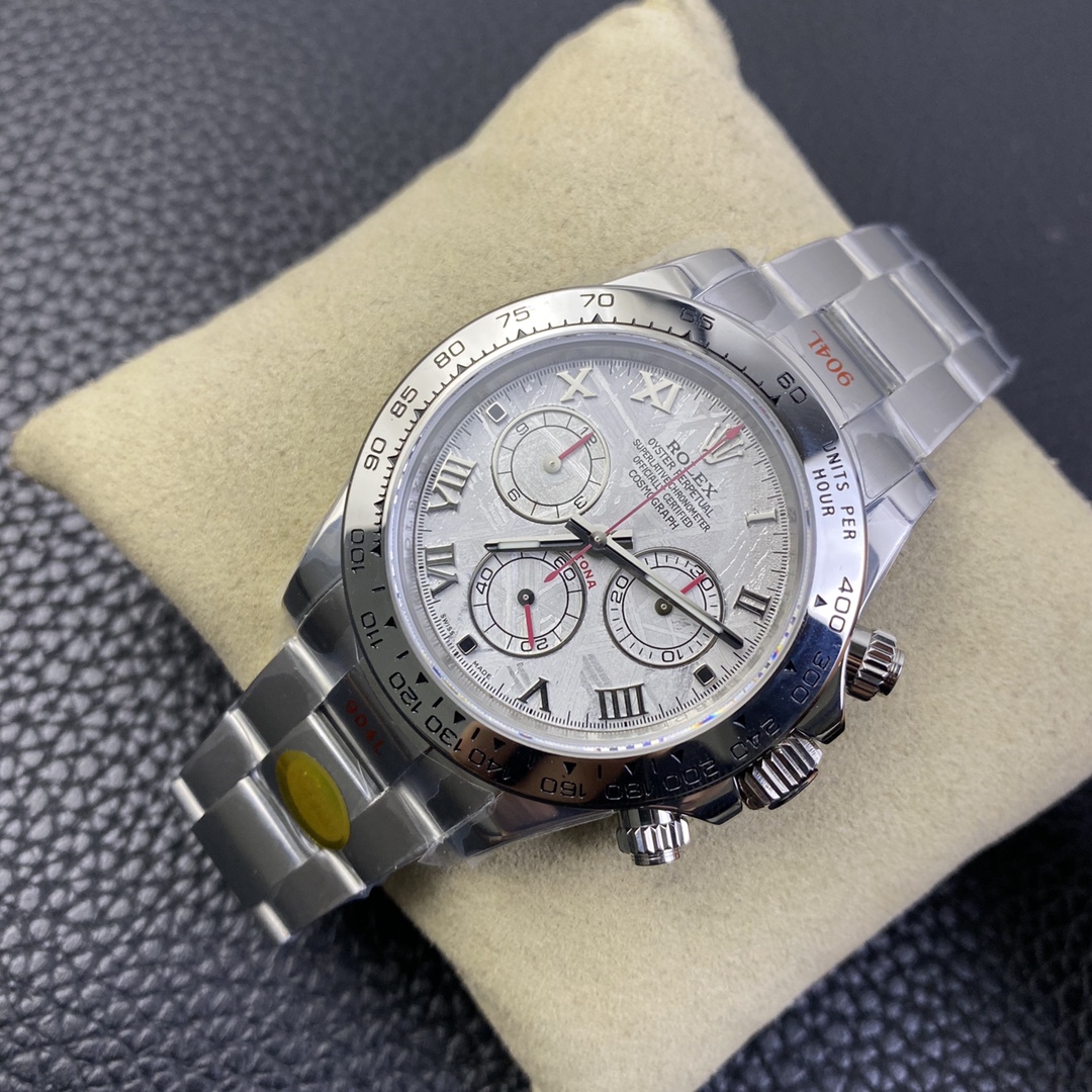 This Rolex Daytona series wristwatch showcases a sense of stability and fashion with its 40mm x 12.6mm size and classic design. Equipped with a Swiss ETA4130 automatic mechanical movement, it ensures accurate and reliable time display. The watch features hour, minute, and second functions, as well as luminescent hands and markers for clear visibility even in the dark. The sapphire crystal glass protects the dial and provides a clear view. The folding clasp design makes it convenient to wear and adjust the bracelet length, adding to the comfort of wearing. The 904L stainless steel case showcases durability and high-quality craftsmanship. Equipped with a stainless steel bracelet, it presents a harmonious aesthetic. This Rolex Daytona series wristwatch, with its sporty style and exceptional performance, is an ideal choice for fashion enthusiasts who aspire to exceptional quality and unique style.