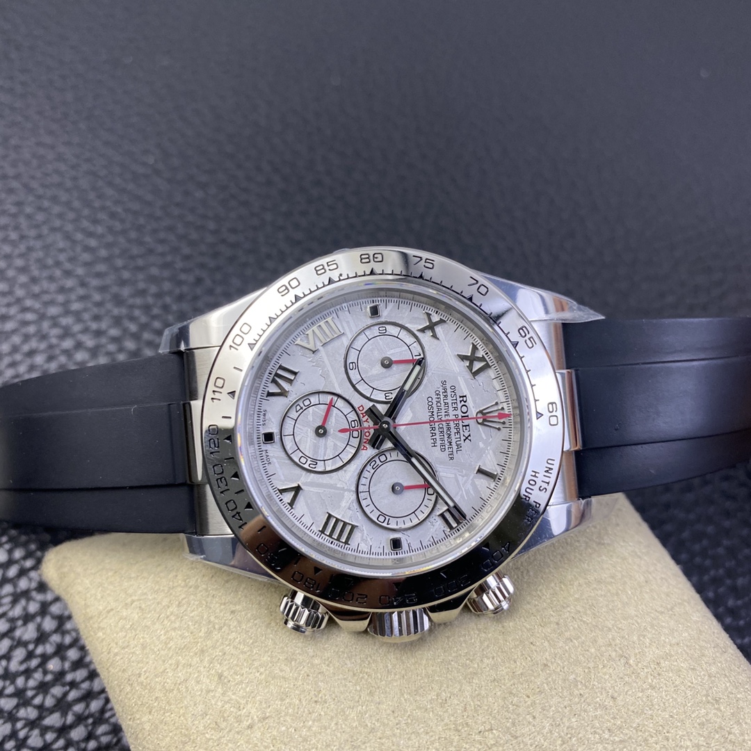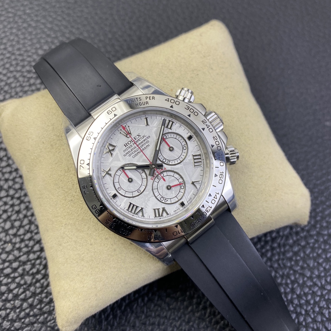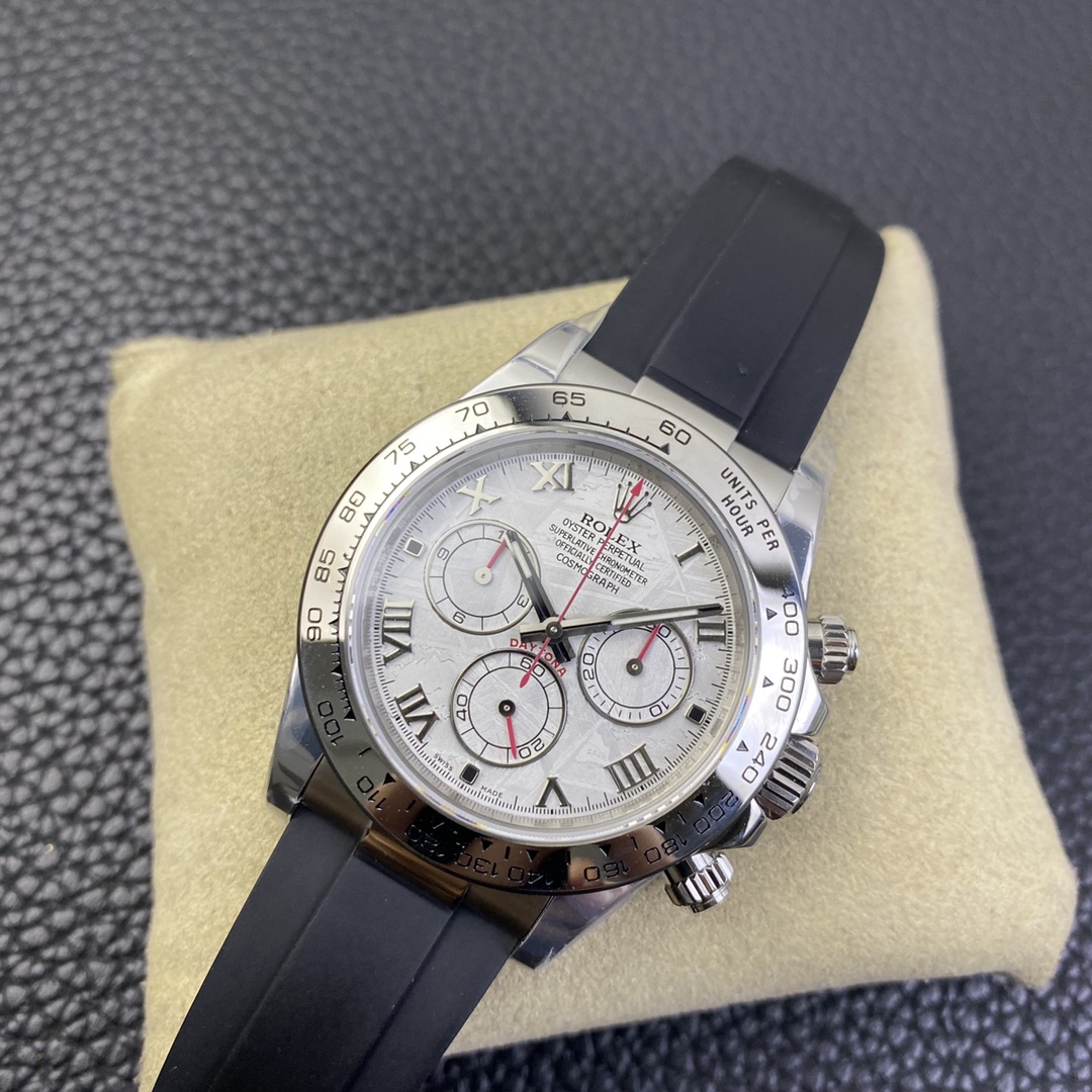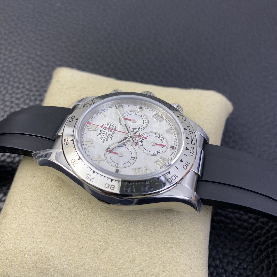 This Rolex Daytona series wristwatch showcases a sense of stability and fashion with its 40mm x 12.6mm size and classic design. Equipped with a Swiss ETA4130 automatic mechanical movement, it ensures accurate and reliable time display. The watch features hour, minute, and second functions, as well as luminescent hands and markers for clear visibility even in the dark. The sapphire crystal glass protects the dial and provides a clear view. The folding clasp design makes it convenient to wear and adjust the bracelet length, adding to the comfort of wearing. The 904L stainless steel case showcases durability and high-quality craftsmanship. Equipped with a stainless steel bracelet, it presents a harmonious aesthetic. This Rolex Daytona series wristwatch, with its sporty style and exceptional performance, is an ideal choice for fashion enthusiasts who aspire to exceptional quality and unique style.