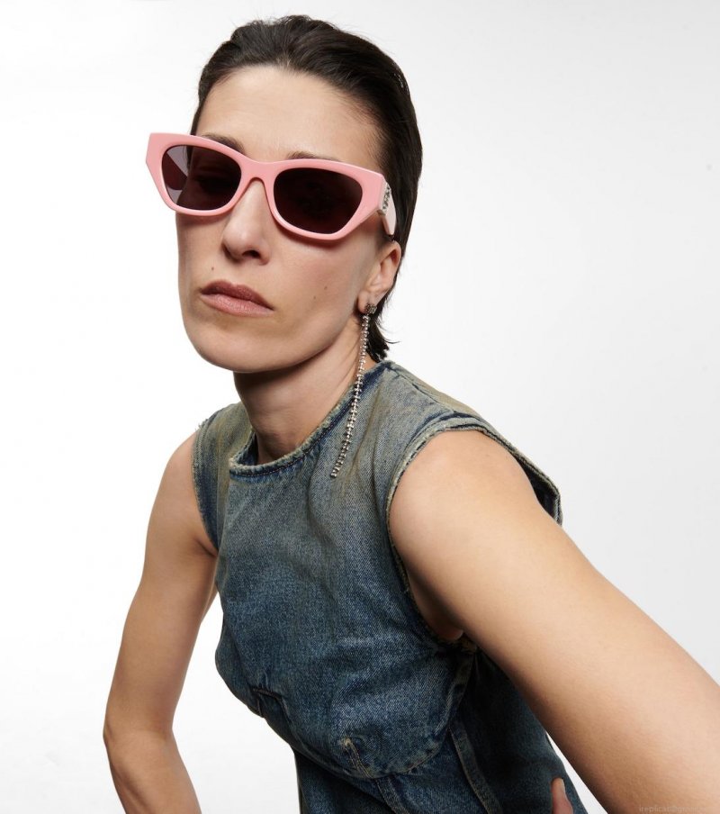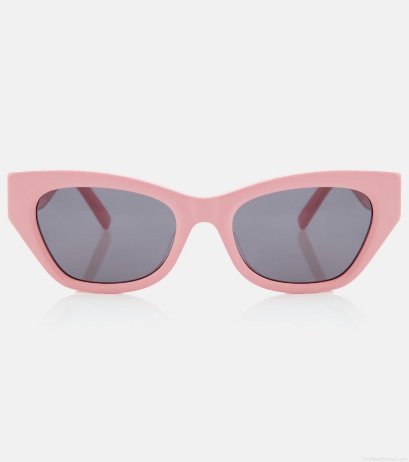 These cat-eye sunglasses from Givenchy are made from pink acetate. Adorned with silver-tone 4G emblems at the temples, they have dark, gray lenses.
