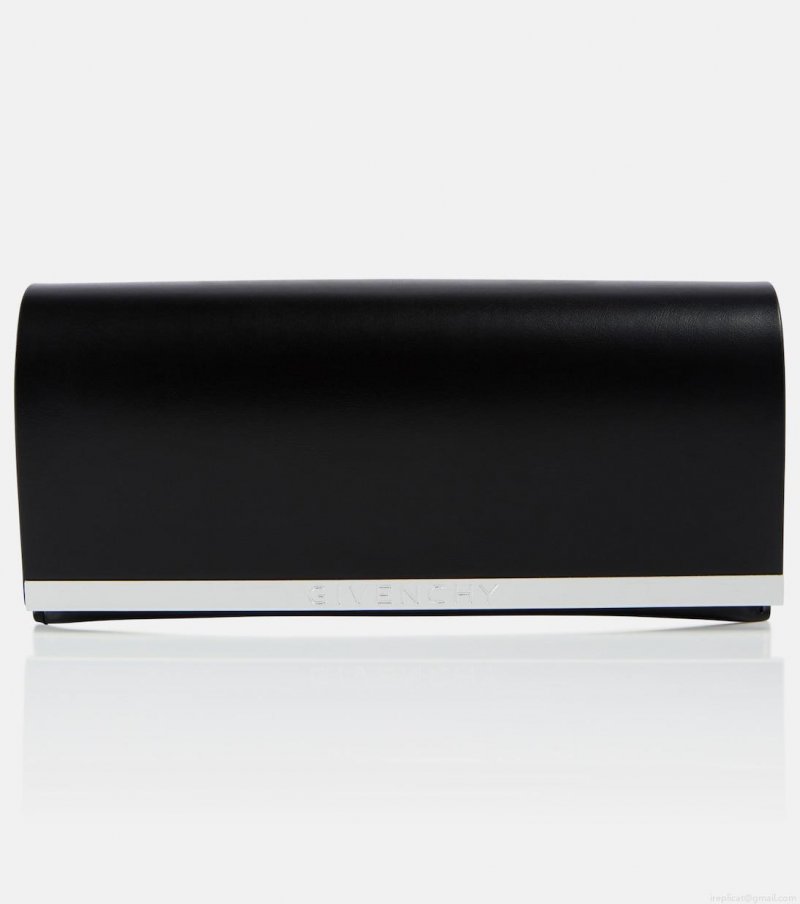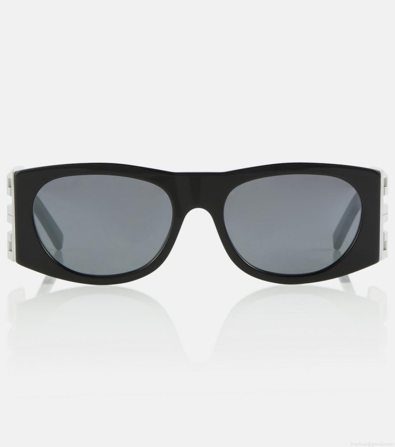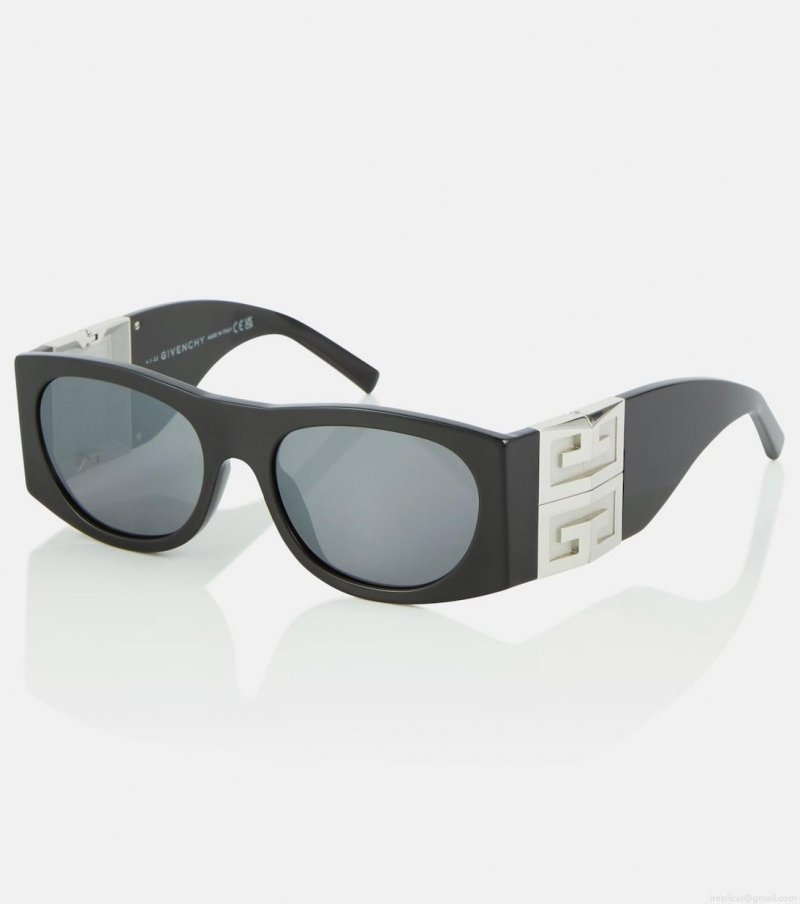 Givenchy’s mirrored 4G logo is an ode to founder Hubert de Givenchy’s love of symmetry. These rectangular sunglasses are made in Italy with tinted oval lenses set in angular glossy acetate frames.