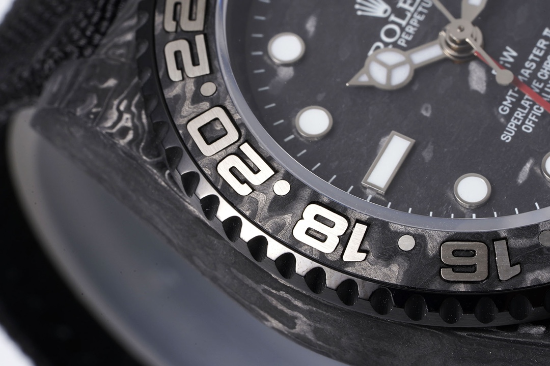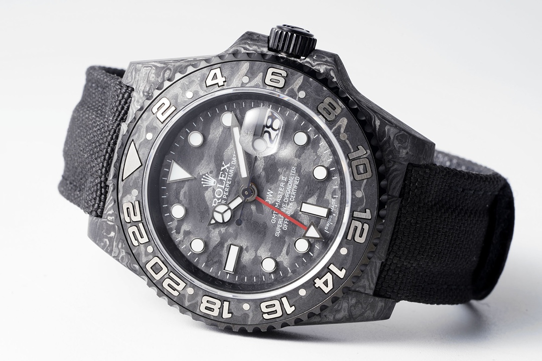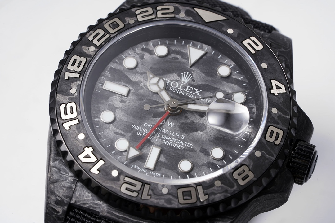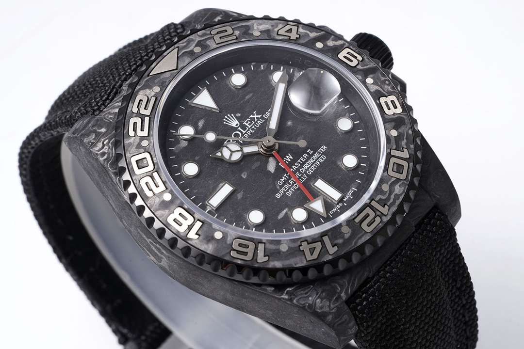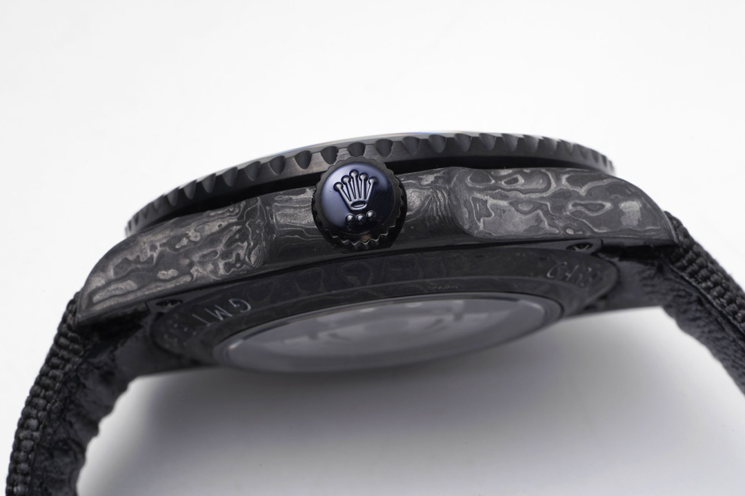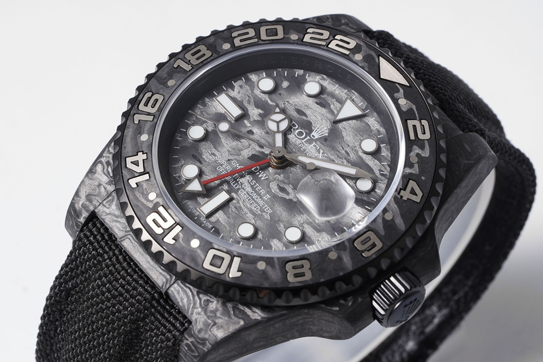 Featuring an Oysterlock clasp design, the watch can be easily worn and removed. Paired with a fabric strap, it provides comfort and a touch of style that perfectly complements the carbon fiber case, presenting a unique design concept.