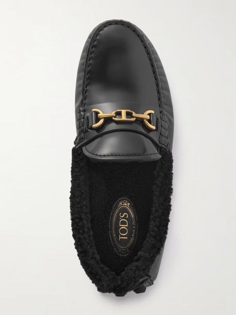 - Black leather and shearling (Calf, Lamb)