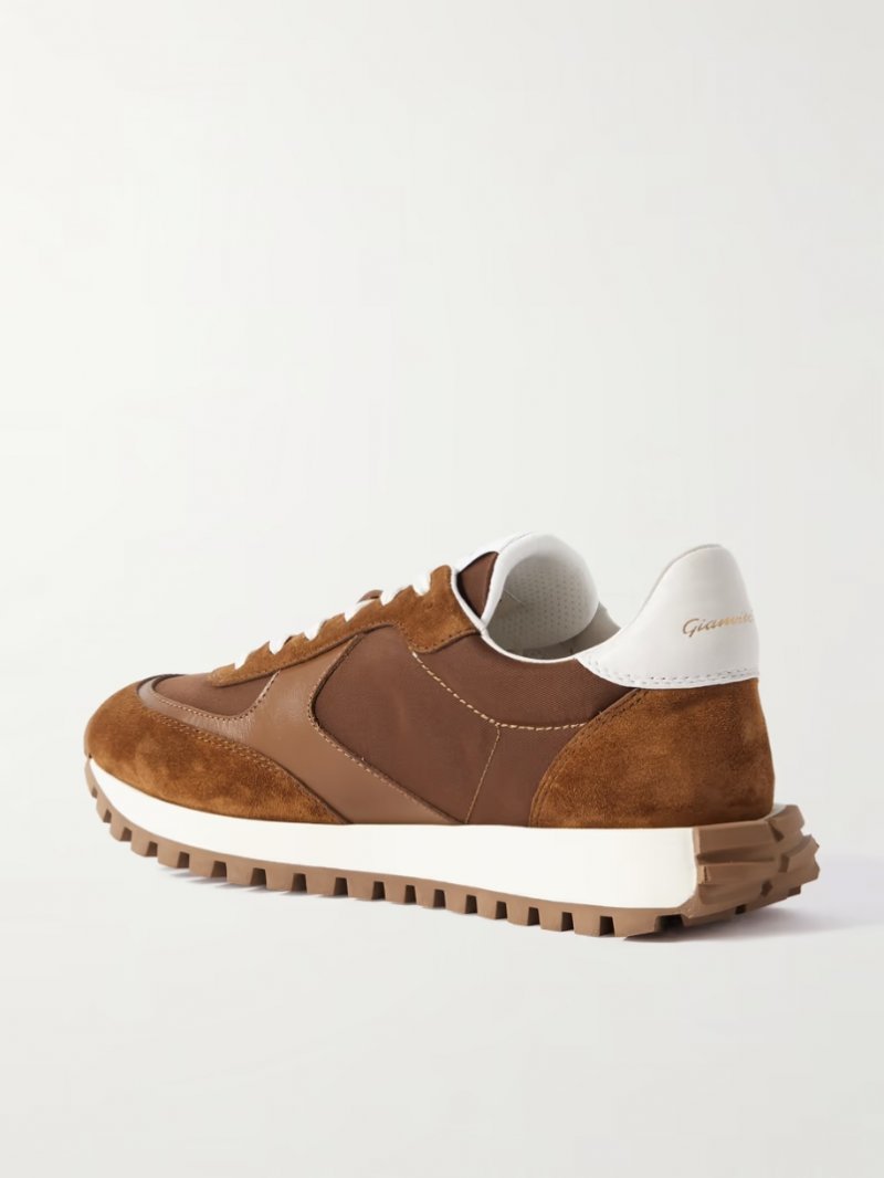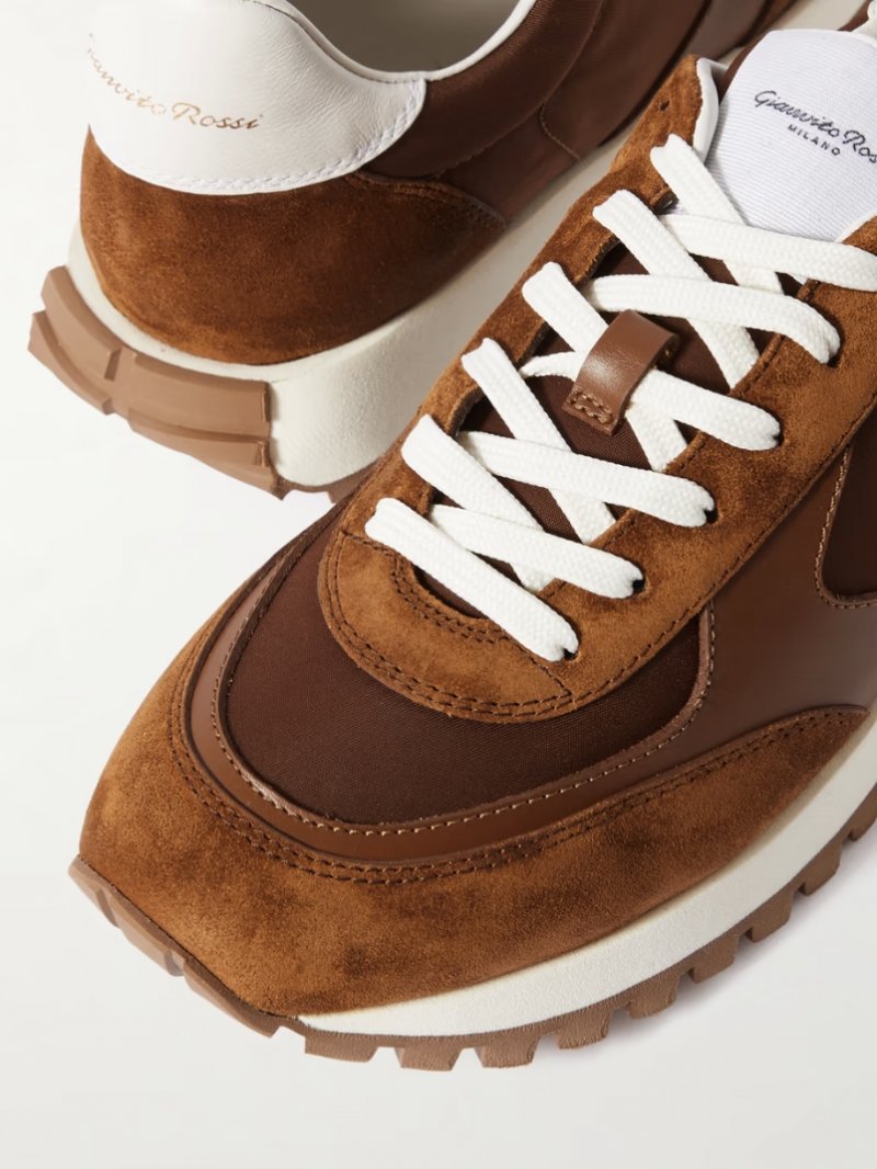 - Brown suede, dark-brown leather (Calf, Lamb) and shell