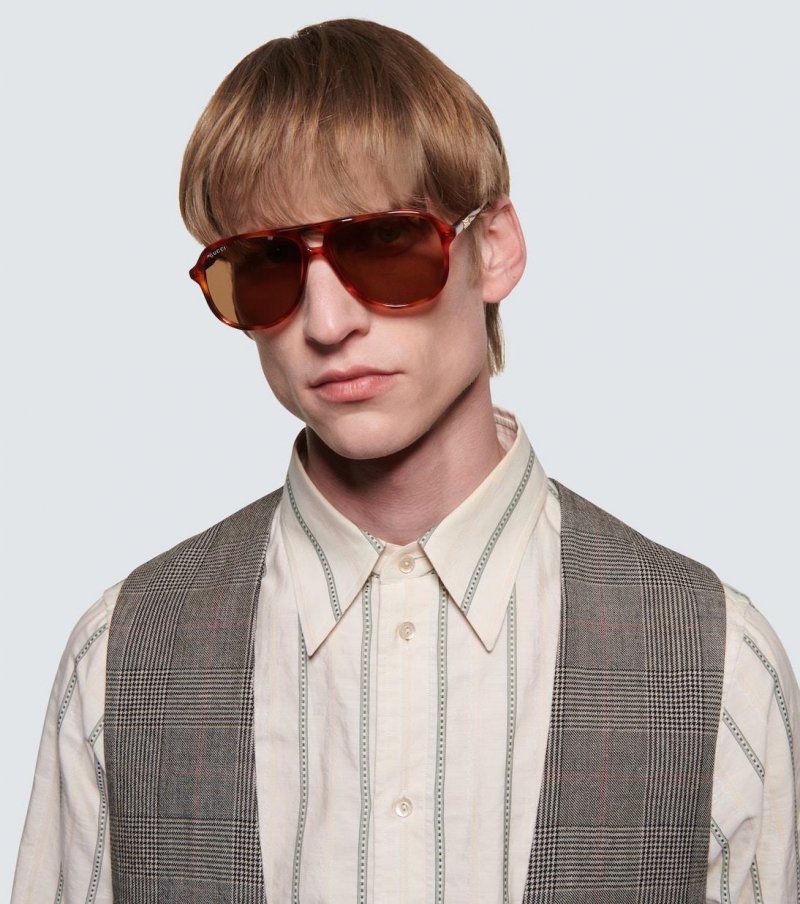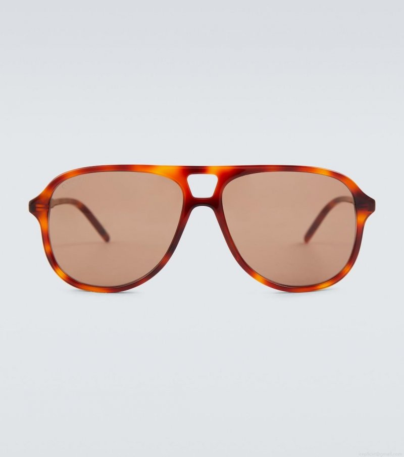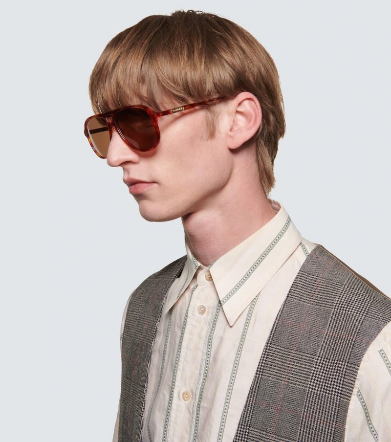 Made of acetate in a brown tortoiseshell, these aviator-style frames from Gucci feature brown-tinted lenses, and arrive in a velvet-covered hard case. Please note the color of the case may vary.