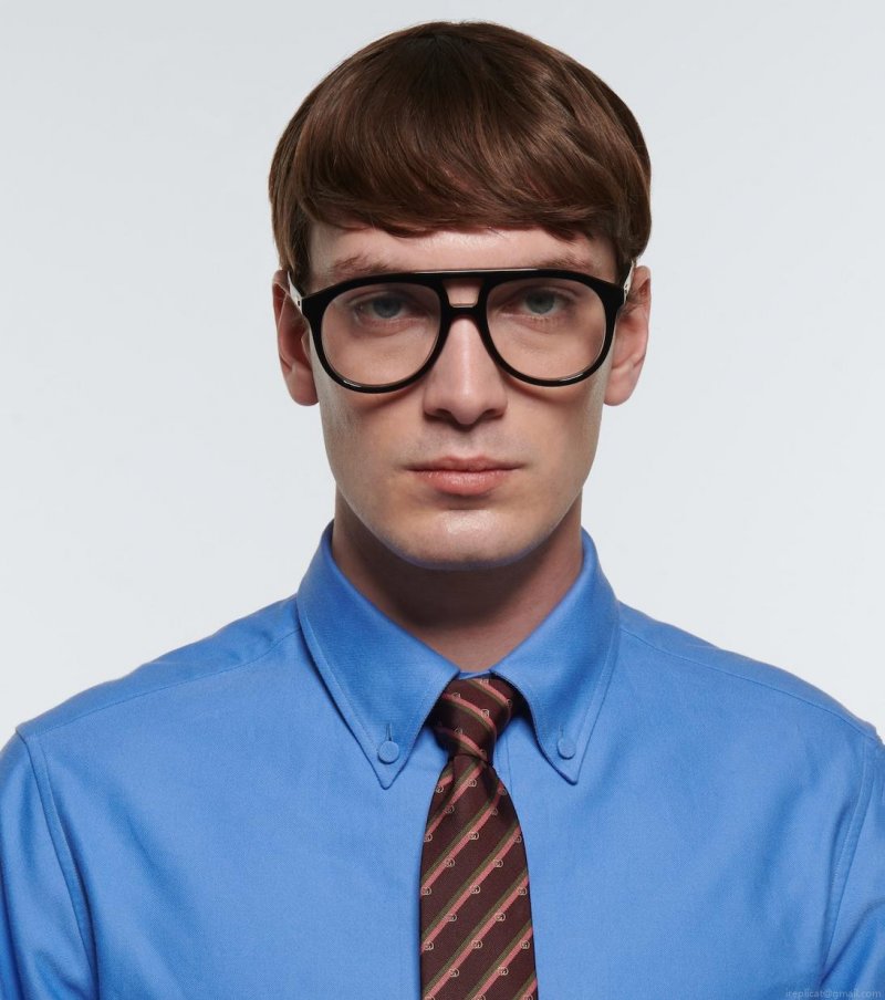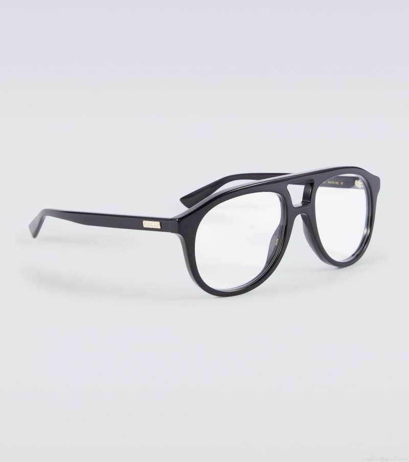 Bring Gucci’s retro charm to your warm-weather accessories roster with these aviator-style glasses. Made from black acetate, this minimalistic style features subtle, golden logo detailing at the temples.
