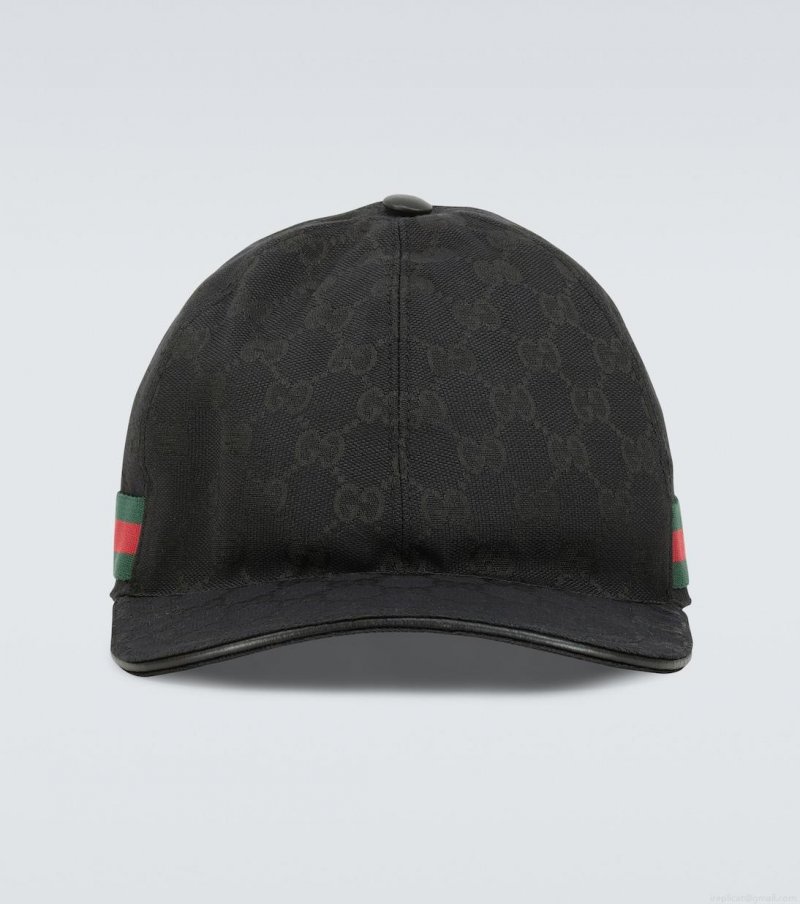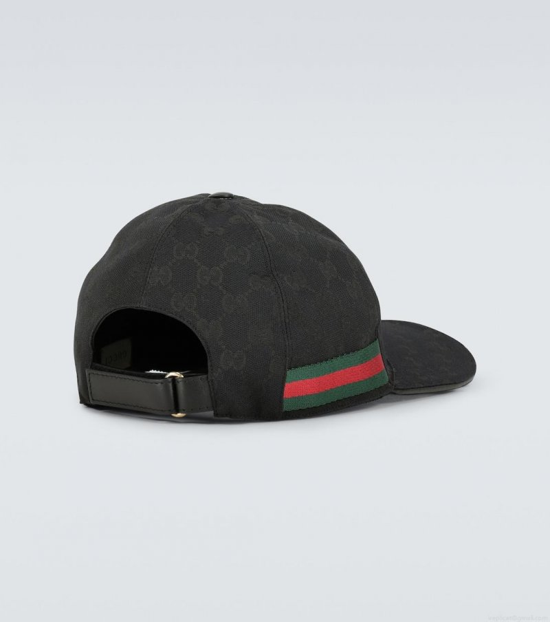 Made in Italy, a classic baseball cap in original black GG canvas with web detail.