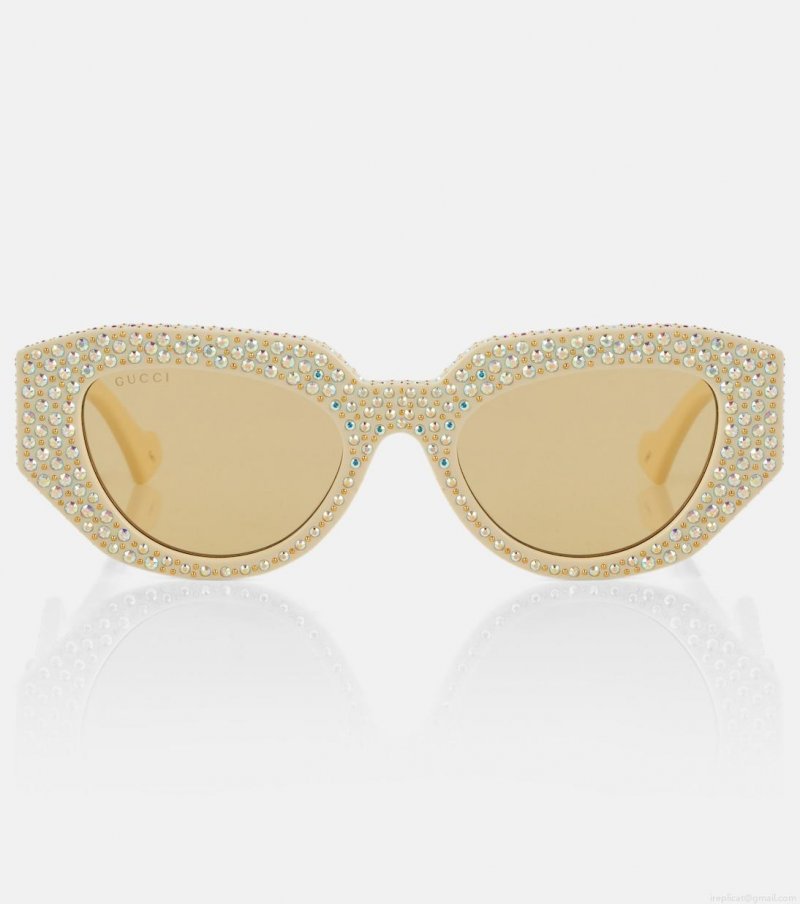Shimmering crystals and gold-toned accents make these Gucci sunglasses a must-have in every fabulous eyewear collection. They’re made from durable ivory acetate to a timeless oval silhouette that’ll never go out of style.