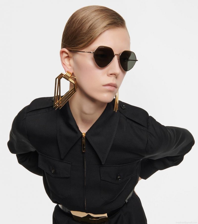 Gucci experiments with unexpected silhouettes for this geometric style. This design has branding throughout and arrives in a protective case. Made in Japan, this playful piece appeared on the Gucci Love Parade runway.