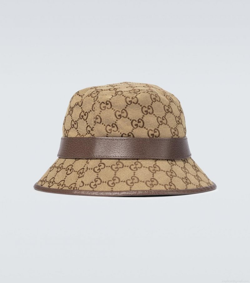 Part of the Gucci Epilogue collection, this beige fedora hat feature's the labels' all-over double G monogrammed canvas, finished with brown leather trims.