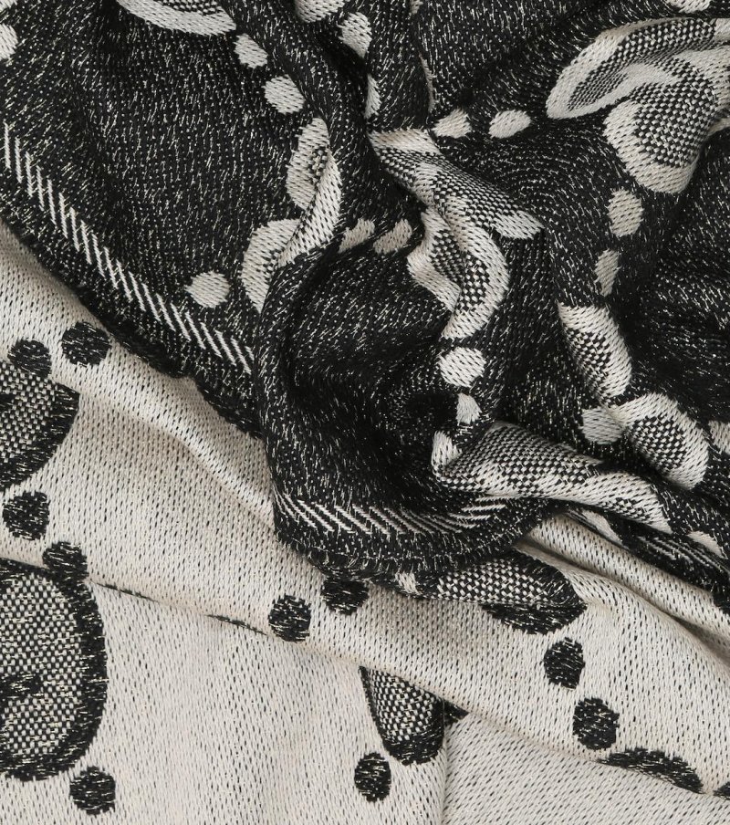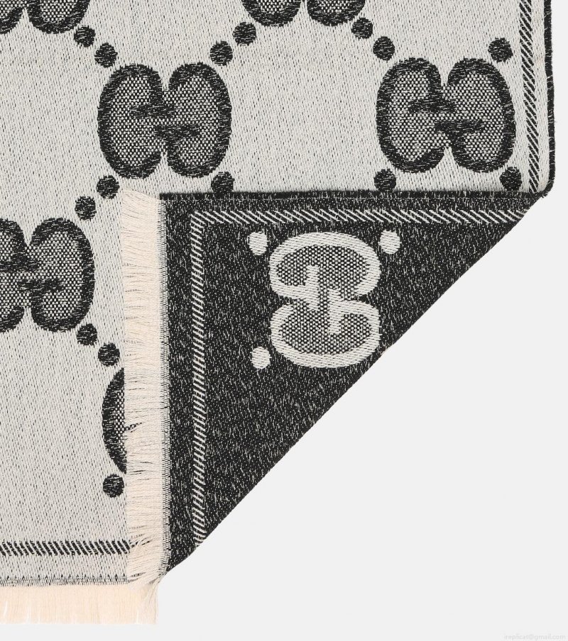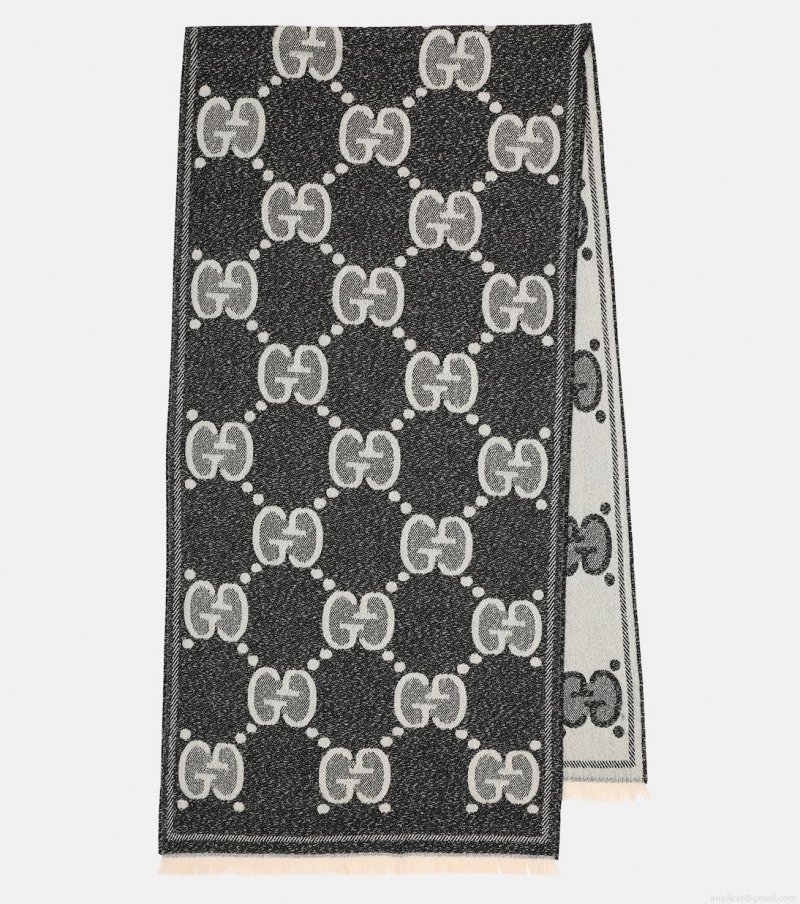 Woven with lamé fibers for a lustrous silvery finish, this GG jacquard scarf from Gucci can't help but showcase your love of the brand. Arriving in go-with-everything black and gray, it's made from warming wool and framed with both fringed and raw edges. Style yours over the label's iconic coats.