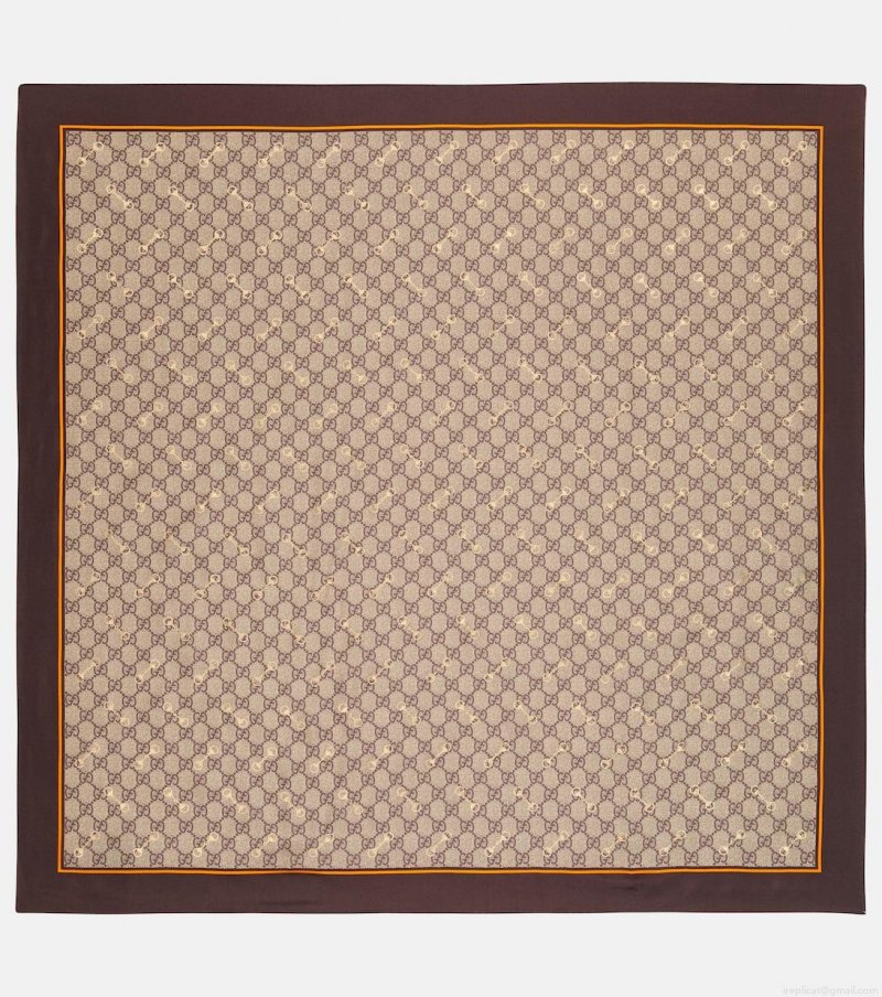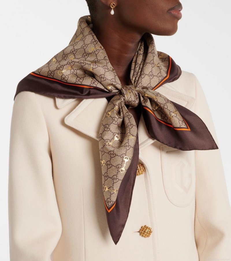 Complete all looks on an elegant note with this square silk scarf from Gucci. Adorned with a signature GG monogram print – updated with golden Horsebit detailing – it's destined to be found in the wardrobes of all label devotees. Match yours to the label's totes.