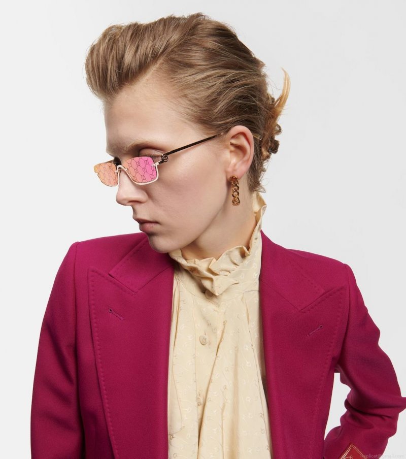 Showcase your devotion to Gucci in these rectangular sunglasses with the GG motif printed all over the purple-tinted lens. The style is finished with a slick, golden acetate frame.