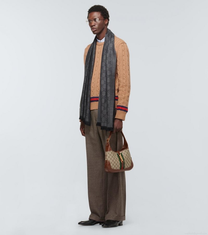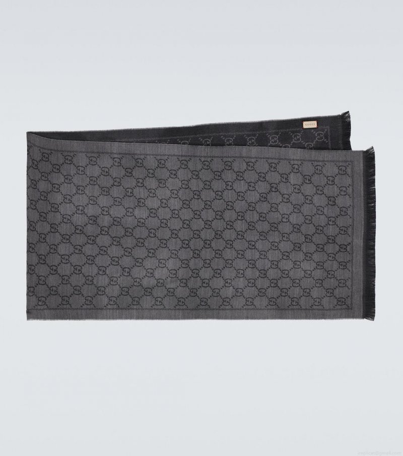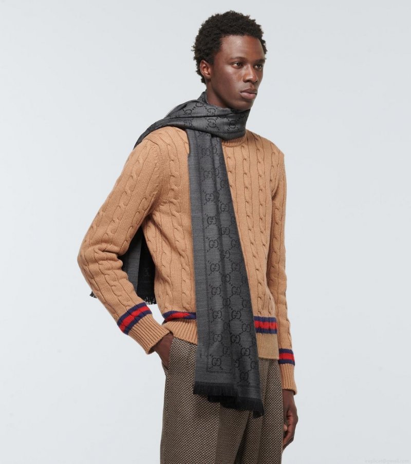 This scarf from Gucci is crafted from pure wool, and features a GG jacquard motif throughout in grey and black.