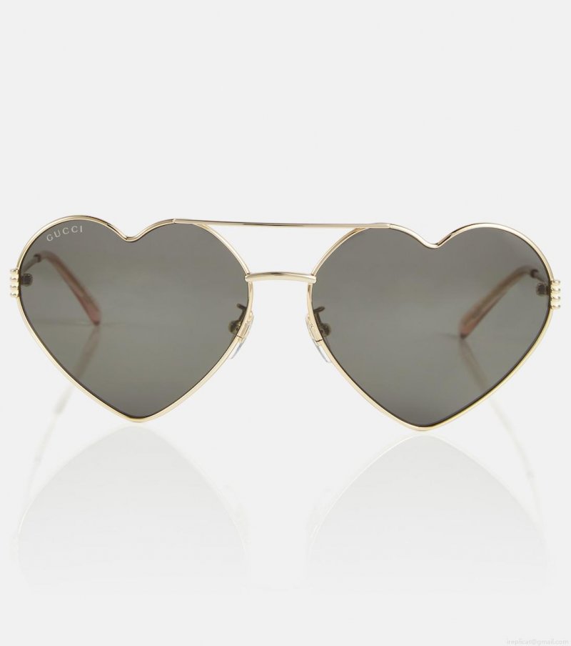 Bring a playful finish to your everyday ensemble with these heart-shaped sunglasses from Gucci. The style is features a gold-tone metal frame with grey lenses, and is finished with Interlocking G detailing at the temples.